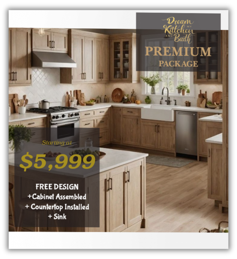 My Dream Kitchen & Bath is at your service with wide range selection of kitchen cabinets, kitchen countertops and free kitchen and bathroom design.